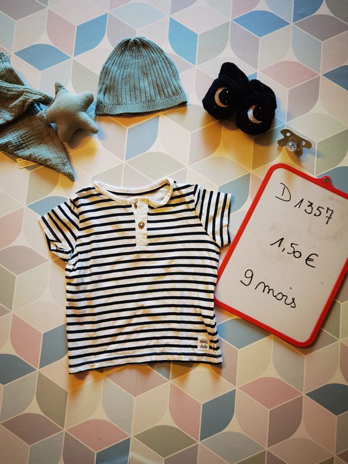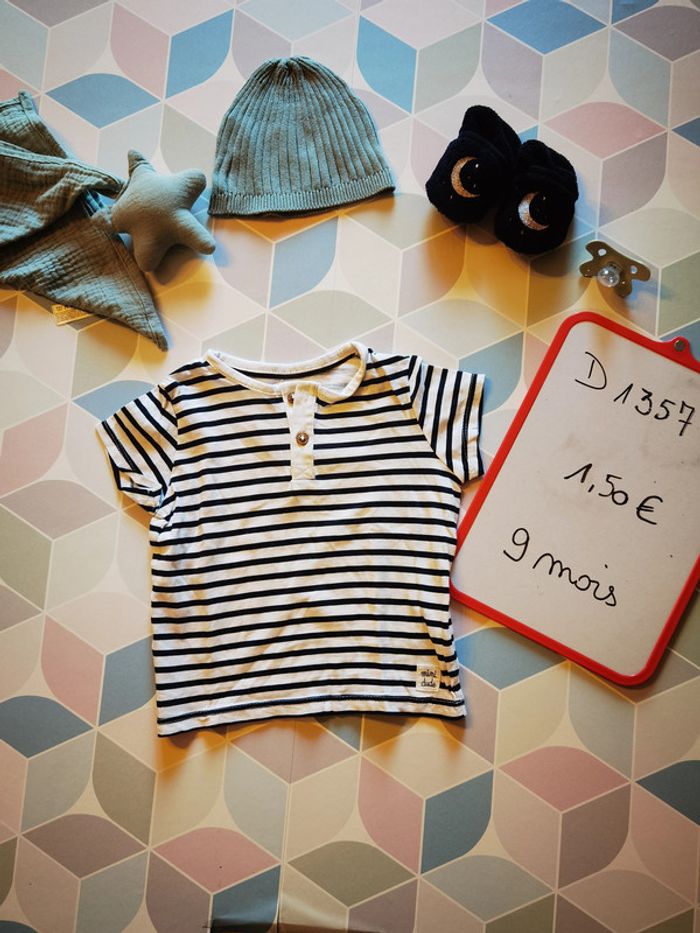 tee-shirt manche courte blanc rayé marine pour garçon de 3 mois #labourseo80_garçon3mois N'hésitez pas à me contacter pour des achats multiples site internet : www.la-bourse-o.fr