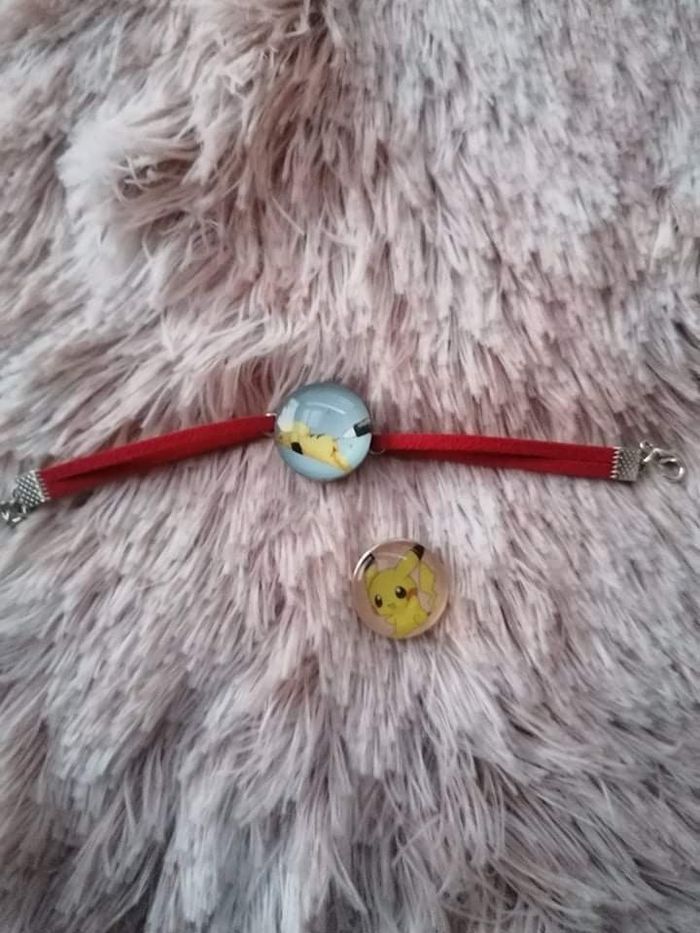 Bracelet en suédine avec des détails argentés et ses 2 boutons sur le thème Pikachu (Pokémon). La taille peut être changée pour s'adapter la taille de l'enfant