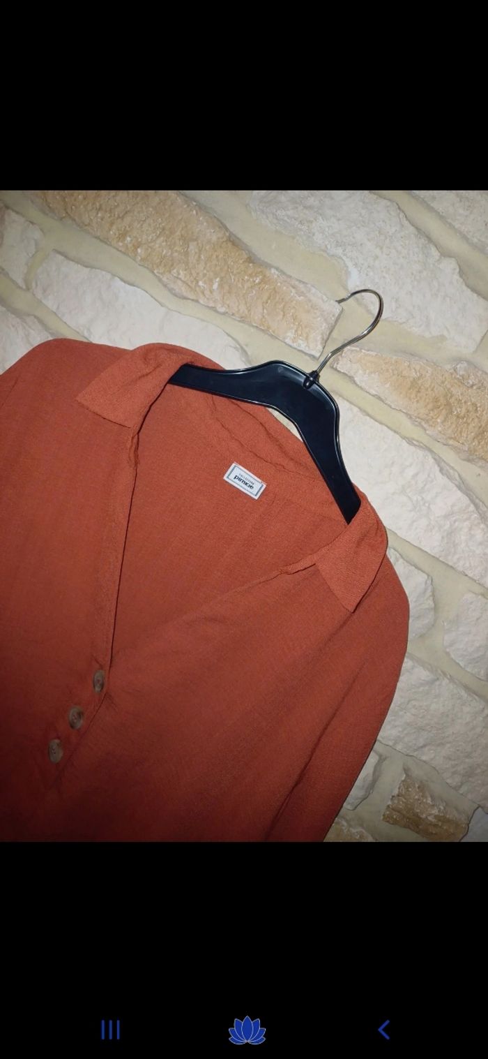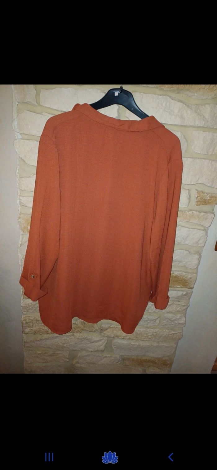 Jolie blouse manches 3/4. Plus longue à l arrière qu à l avant. Petit col