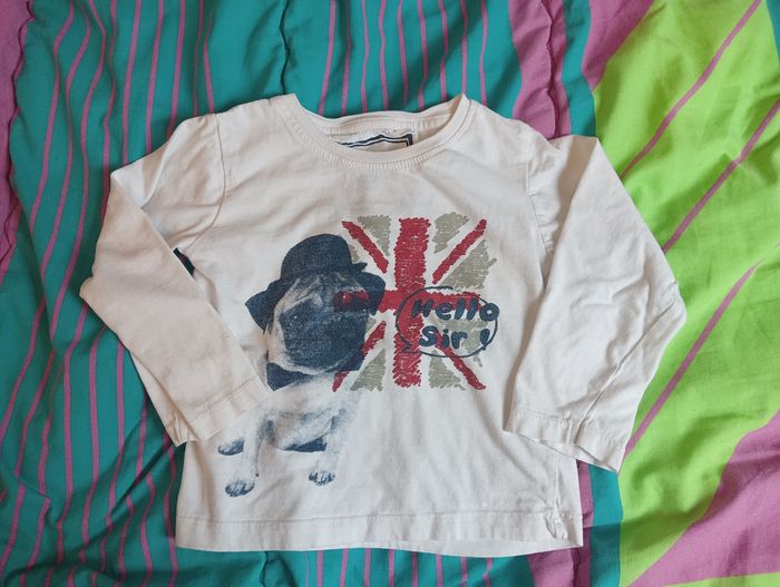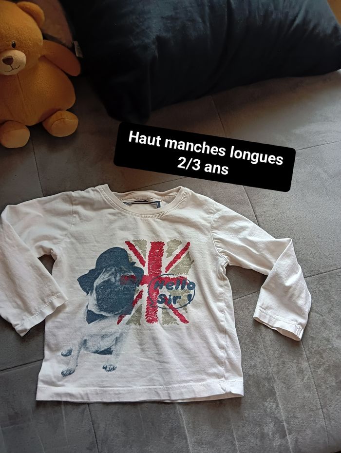 💐 Haut garçon manches longues taille 3 ans mais taille un peu petit . Dessin chien. Bon état. 🌀 Manches longues 🌀 100% coton 🌀 Taille 2/3 ans 🌀 Marque B-unity