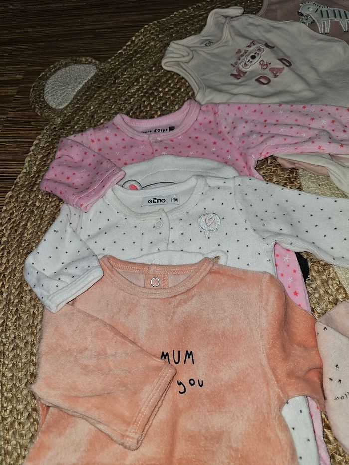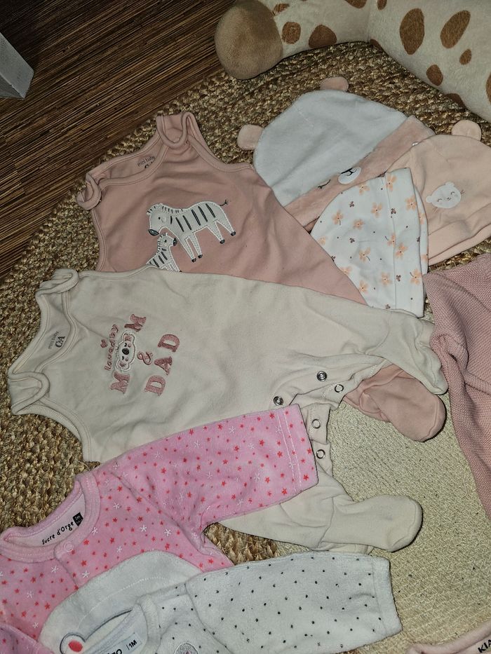 Lot en excellent état 4 pyjamas chauds 2 grenouillères 2 pantalons 1 body MC 1 gilet 3 bonnets Différentes marques