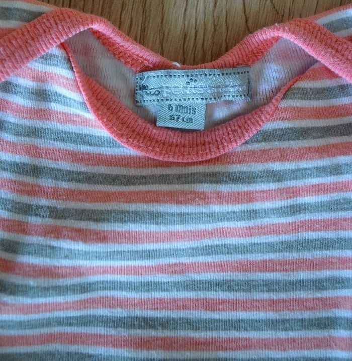 Bodie manches longues, taille 6 mois. Marque : Mes petits cailloux. En bon état. Prix : 1€