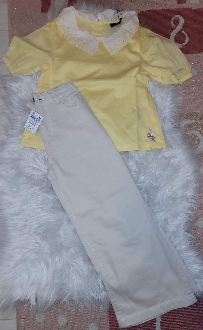 Blouse sergent major 8ans. Jean pattes d'éléphant beige okaidi 8ans neuf Le tout taille 7ans