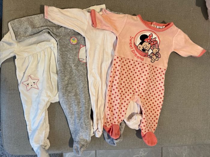 Bonjour, Vends lot de 4 pyjamas bébé fille, En très bon état Marque confondu ( Disney, orchestra ….)