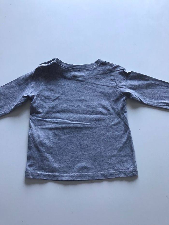 T-shirt bébé gris Mon cœur fait boum. 90% coton + 10% viscose. Ouverture par boutons épaules. 24 mois, taille petit, plutôt du 18 mois. Marque Tape à l’œil