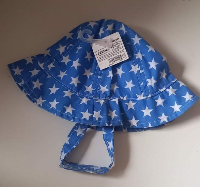 ACCESSOIRES FILLE N°61 Chapeau bleuetoile blanche Scratch Taille 44 cm / 6 mois 80% coton, 20% polyester Neuf étiquette 🏷 Zeeman 1€ #kelly_accessoiresfille