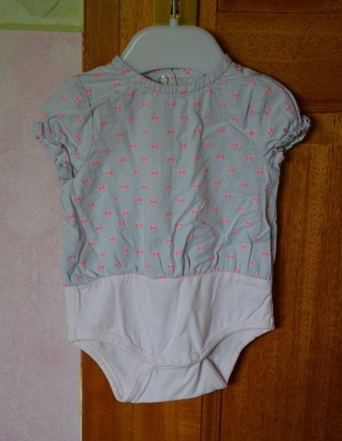 Robe avec bodie intégré, de marque "Sucre d'Orge". Taille 1 mois. En très bon état (une minime tâche sur le devant de la robe, cf dernière photo).