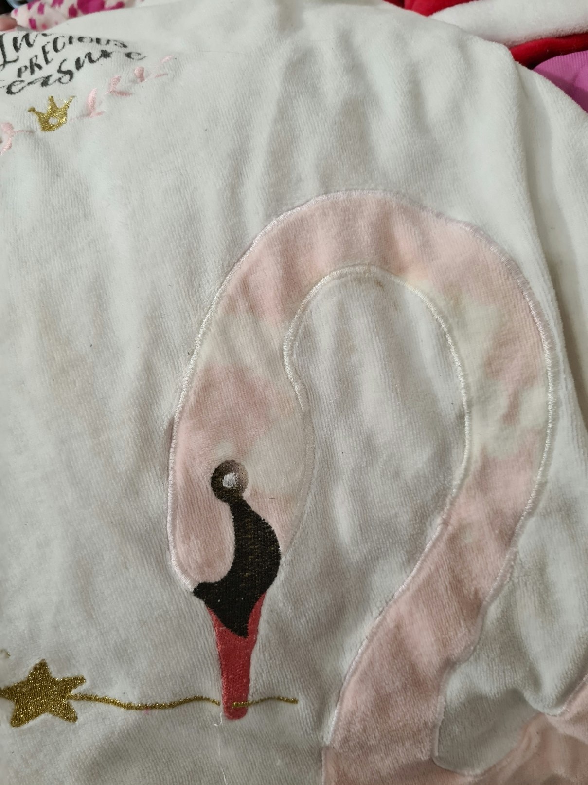 Très jolie, il y a le rose qui est partie sur une partie du cygne ( voir photos) mais très propre sinon