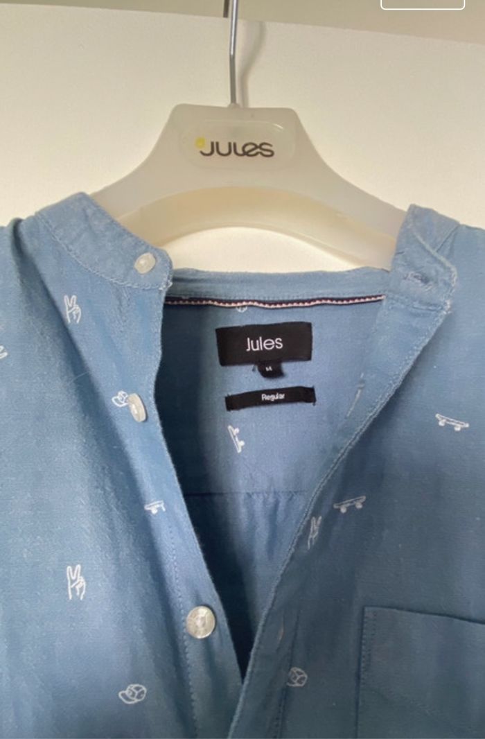 vends chemise Jules avec imprimé fantaisie skateboard 🛹, ✌️🧢 coupe : regular taille : M composition: 100% coton presque jamais portée, en parfait état comme neuve. prix neuf: 39,99€ prix demandée : 5€
