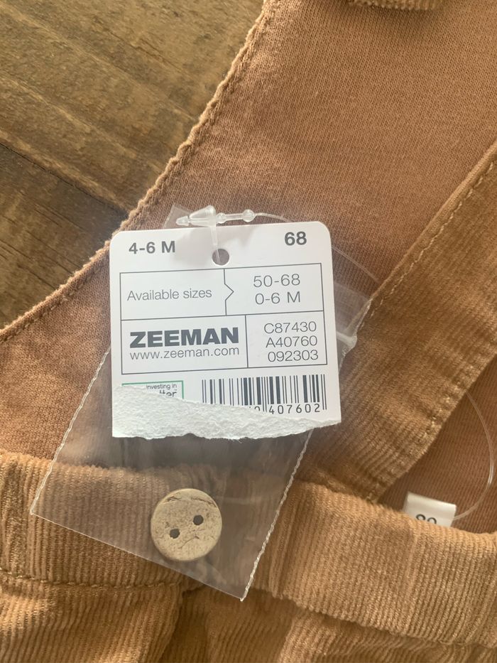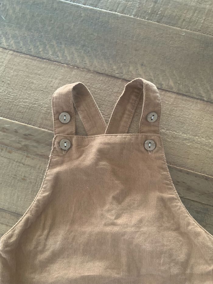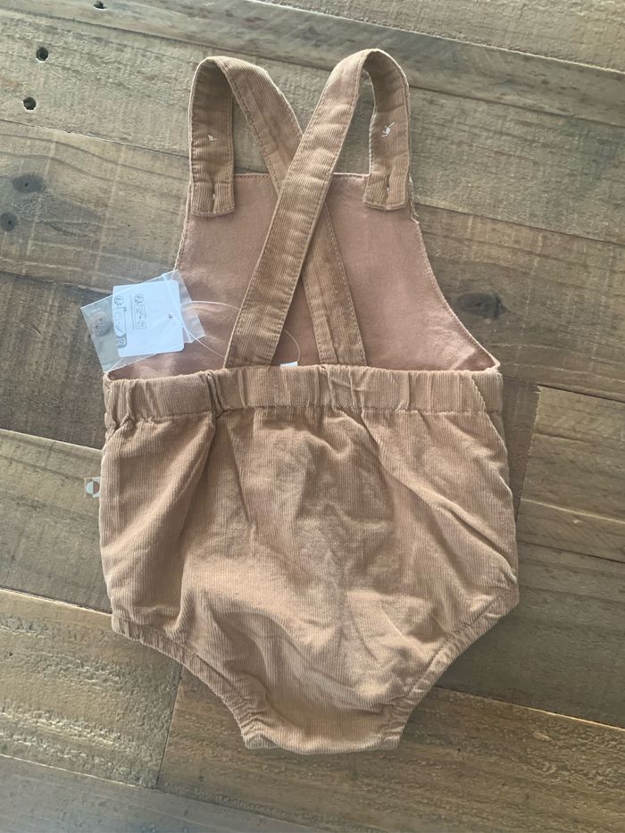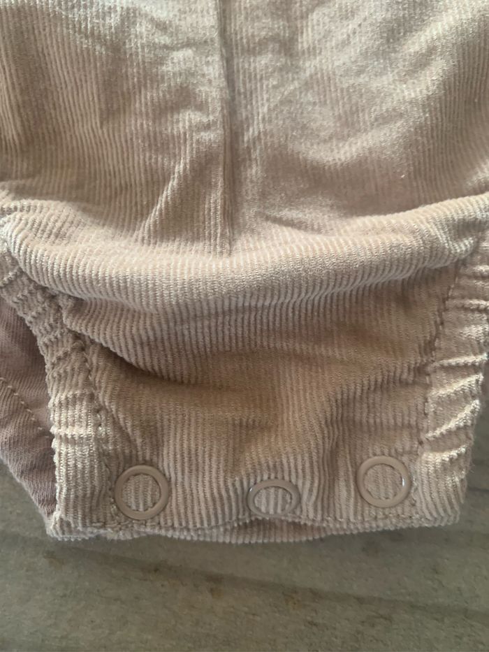 Salopette type barboteuse en velours côtelé fin et doublé est doté de larges bretelles réglables et d’une fermeture boutonnée Taille 4-6 mois (68cm) Article Neuf (prix : 7€)
