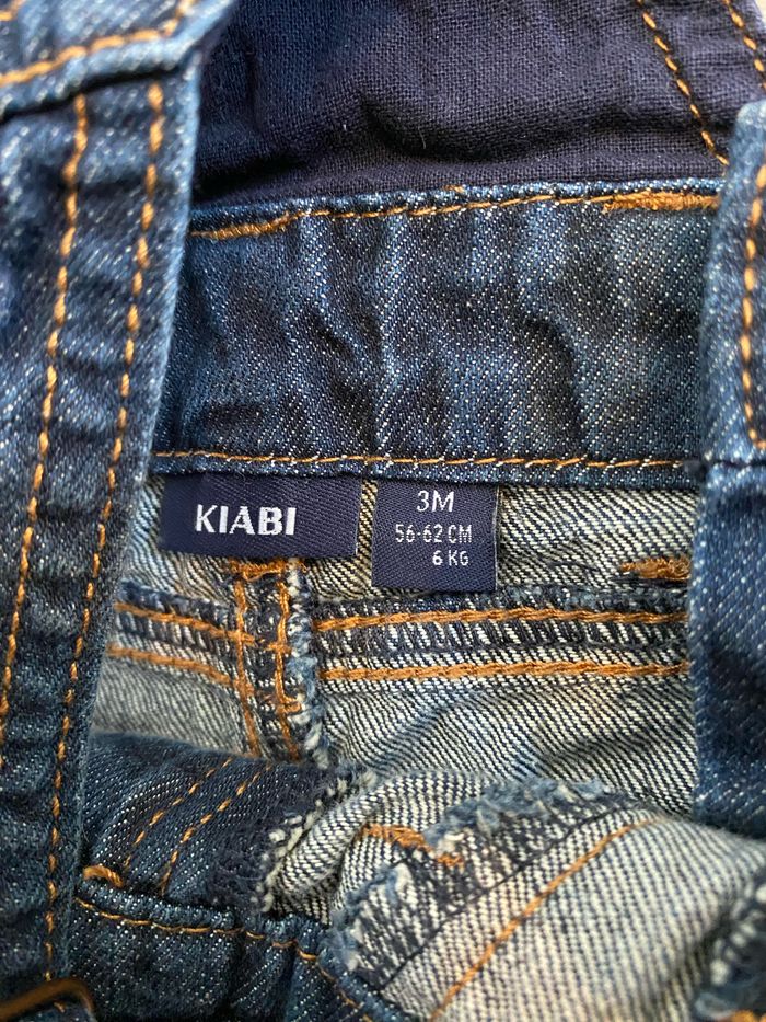 Salopette Jeans Matière : Jeans Âge : 3 mois / 60 cm Utilisation : pressions à l’entrejambe Marque : Kiabi #tiffanie4439_3mois