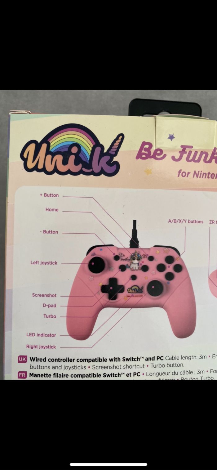 Descriptif en photo. Jolie licorne. Switch. 3 de disponible. 2 identique et une avec 2 licornes dessus. Si vous ne trouvez pas dans mon dressing contacter mol.