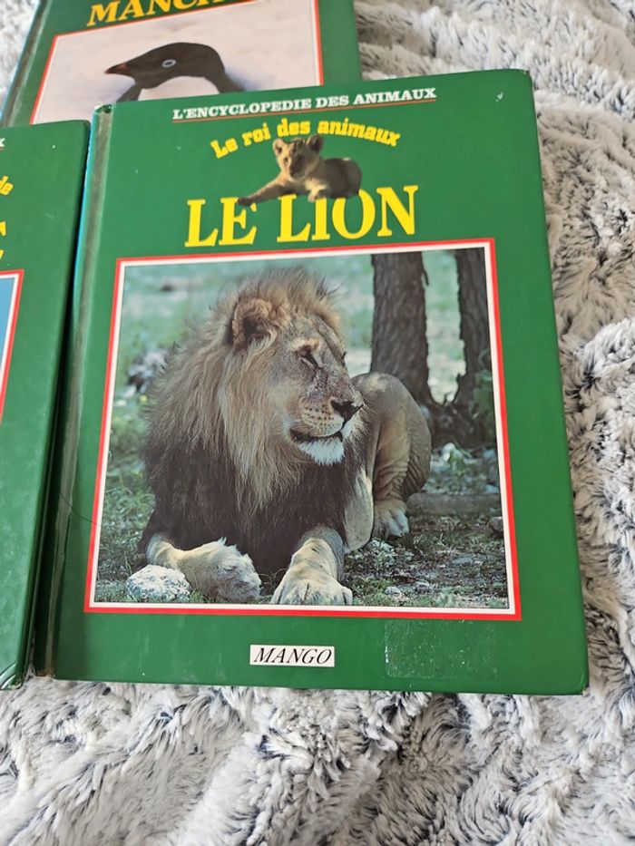 Vend lot de 3 livres L'encyclopédie des animaux * le roi des animaux Le lion * l'oiseau des glaces Le manchot * le plus grand animal du monde La girafe