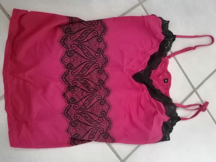 Haut pyjama effet dentelle au niveau du col. Marques d'usure