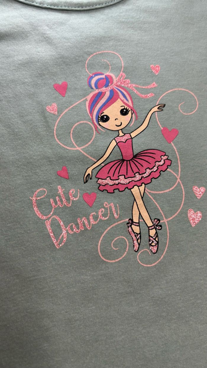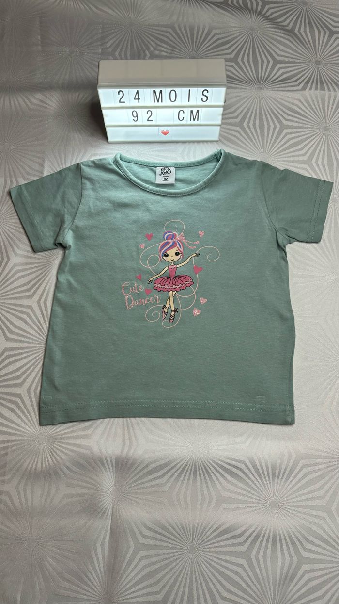 🩰 Tee-shirt à manches courtes 🩰 🩷 Taille: 24 mois - 92 cm 💜 Marque: Kiki & koko 🩷 Couleurs: Vert à motifs danseuse ballerine