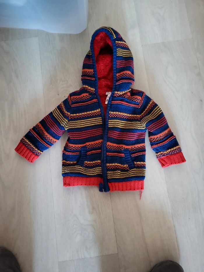 Laine doublure polaire. Rouge et bleu. #nd8015bébé #giletepaisgarçon #gilet6mois