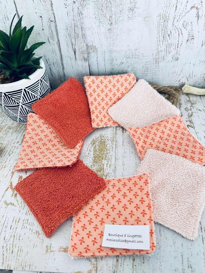 lingettes lavable et réutilisable lot de 8 taille 9x9 cm éponge en coton lavable à 30° pas de sèche linge et l’essorage au minimum pensez à humidifier la lingette avant utilisation plusieurs modèles au choix Envoi rapide et soigné Toutes les lingettes sur @ateliersdisalingettes possibilité de faire en plus grande quantité panier à 10€