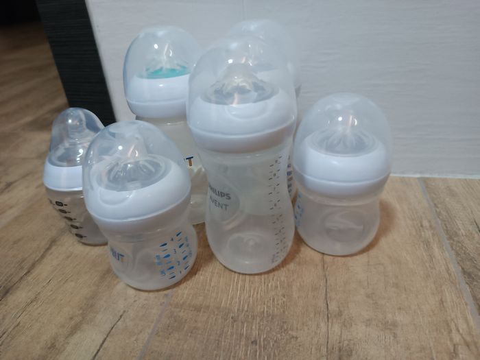 Lots de biberons utilisés deux trois fois puis passage sur autre marque qui convenait mieux à ma fille. 3 biberons 260 ml et 2 125 ml de chez Philippe avec valve anti colliques + un petit tomee tepee Biberons et tétines intactes