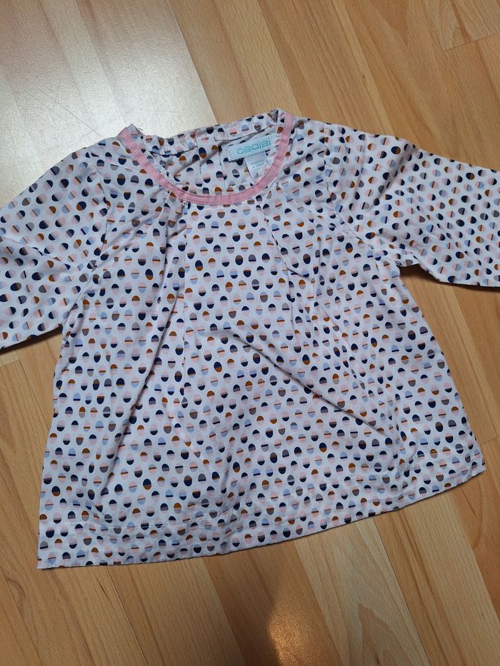 FILLE 6 MOIS N°735 Blouse multicolore Imprimée Bouton au dos Taille 6 mois Obaïbi 5€ #kelly_fille6mois