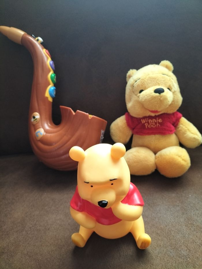 Lot Winnie l'ourson comprenant : Une trompette qui fait de la musique Une peluche Et un jouet Winnie l'ourson Le lot 8€ Offre téléphone photo 3 ,marche parfaitement mais état correct