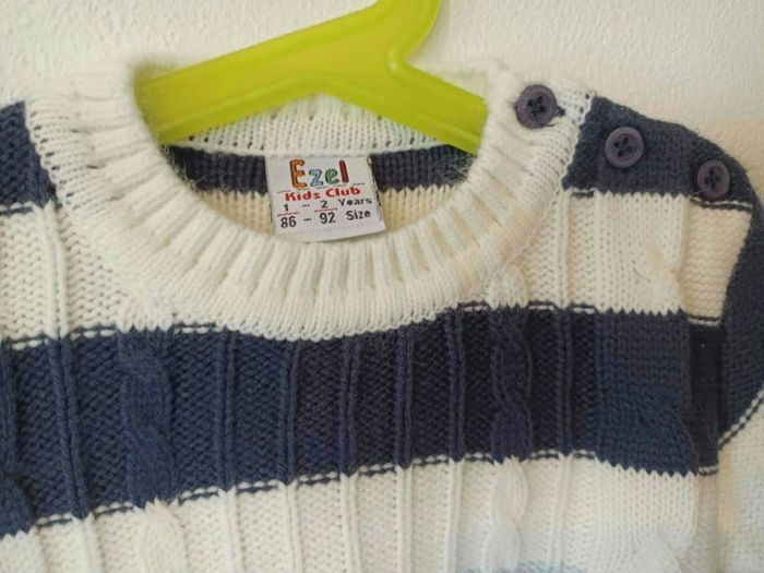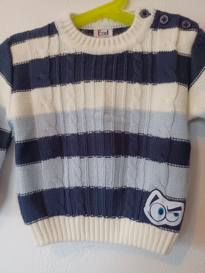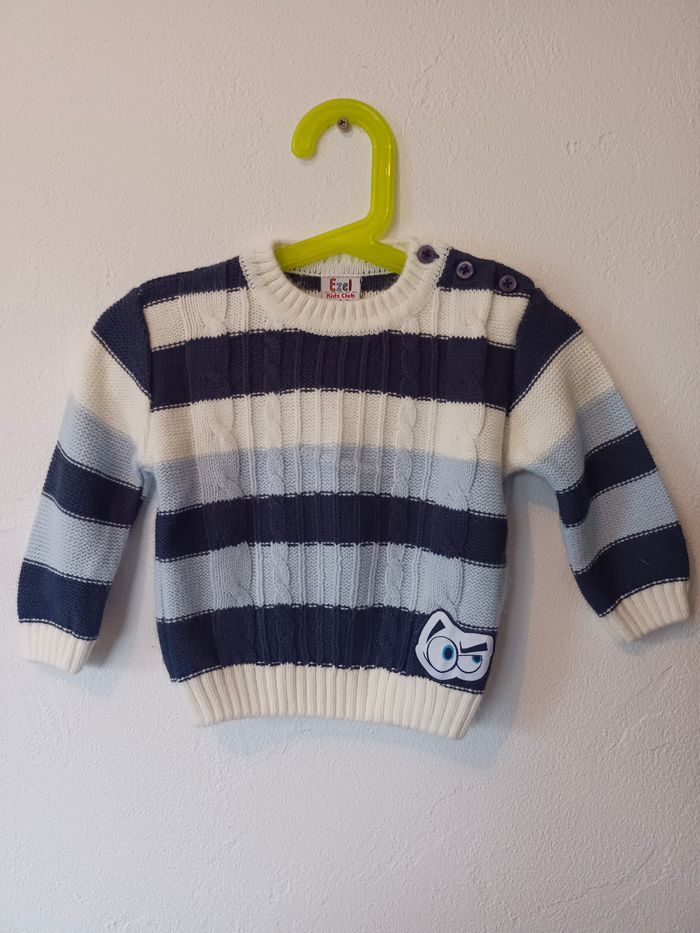 Pull maille torsadée rayé bleu et blanc Kids club 18 mois - photo numéro 1