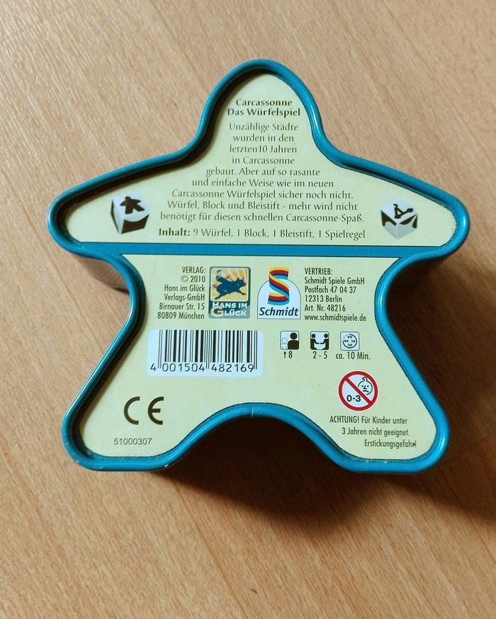 Jeu de dé "Carcassonne" en boite métallique, jeu de société à partir de 8 ans, pour 2-5 joueurs. Jeu neuf.