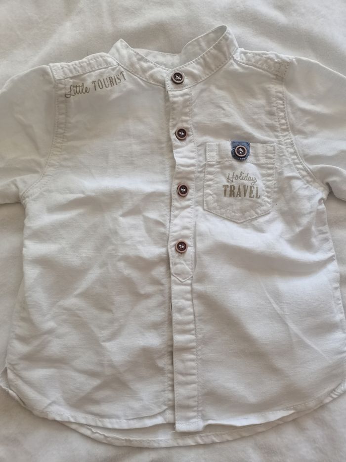 Je vends une chemise 6 mois Baby by Gémo Possibilité de raccourcir les manches Très bon état