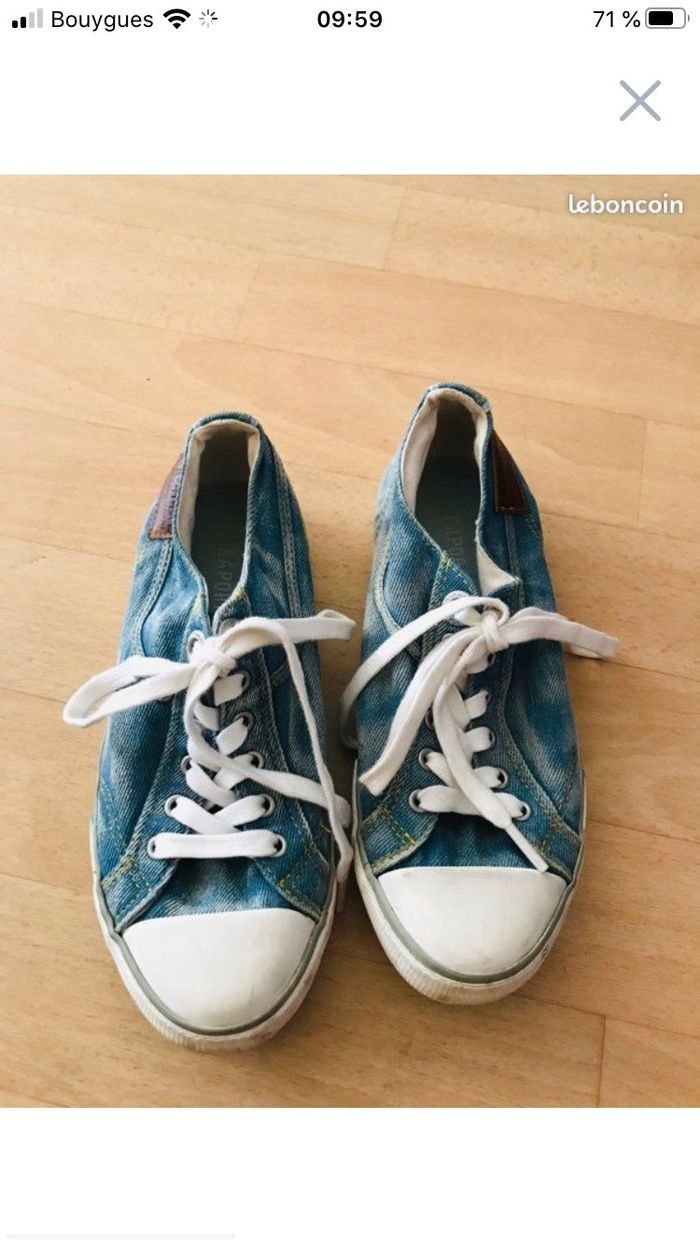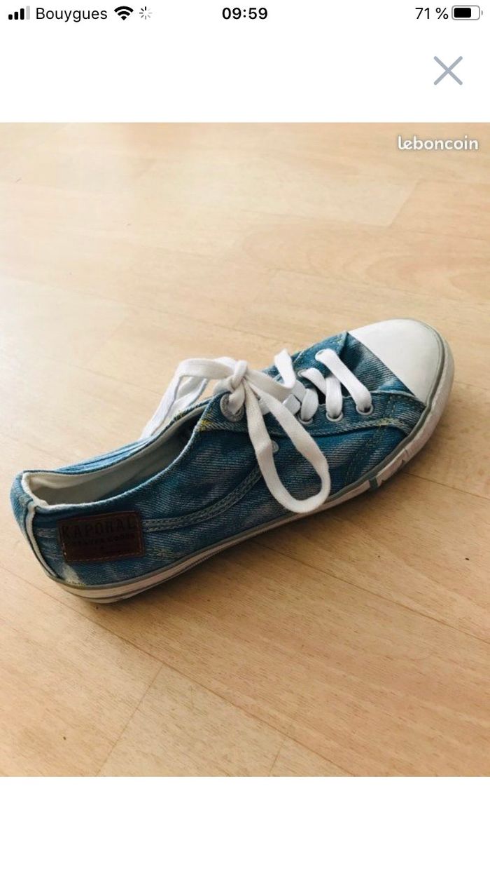 basket Tennis fille pointure 36 Kaporal couleur bleu jean Délavé blanc finition jaune Bon état général quelques traces d’usure (Fr)