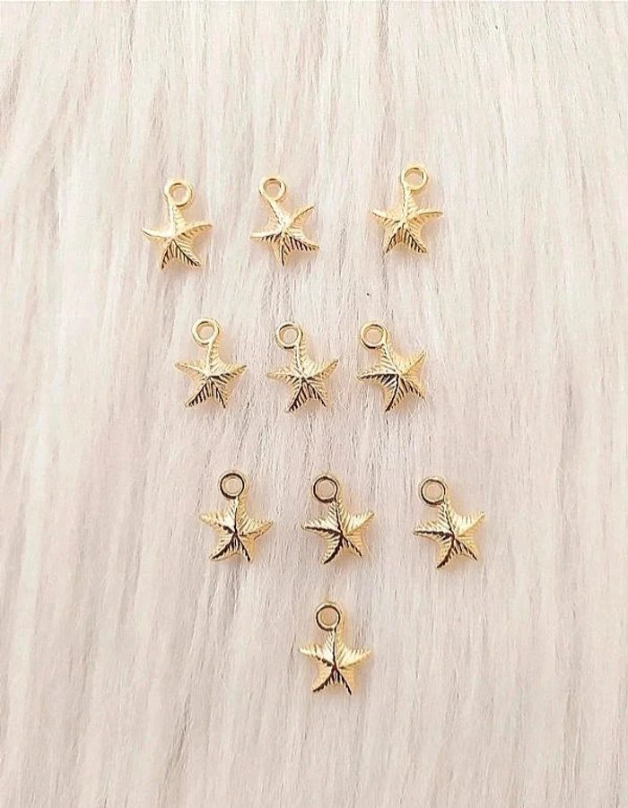 #cencovbijoux Lot de 10 breloques pendentifs étoiles de mer coloris doré Dimensions sans l'attache 1 x 1,1 cm. Neuf.