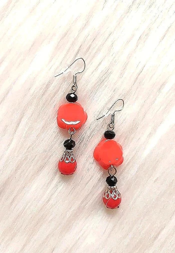 Boucles d'oreilles pendantes motif roses style flamenco - photo numéro 1