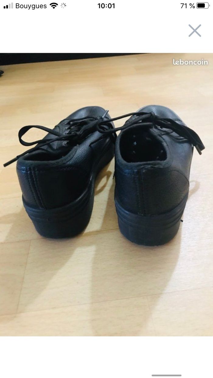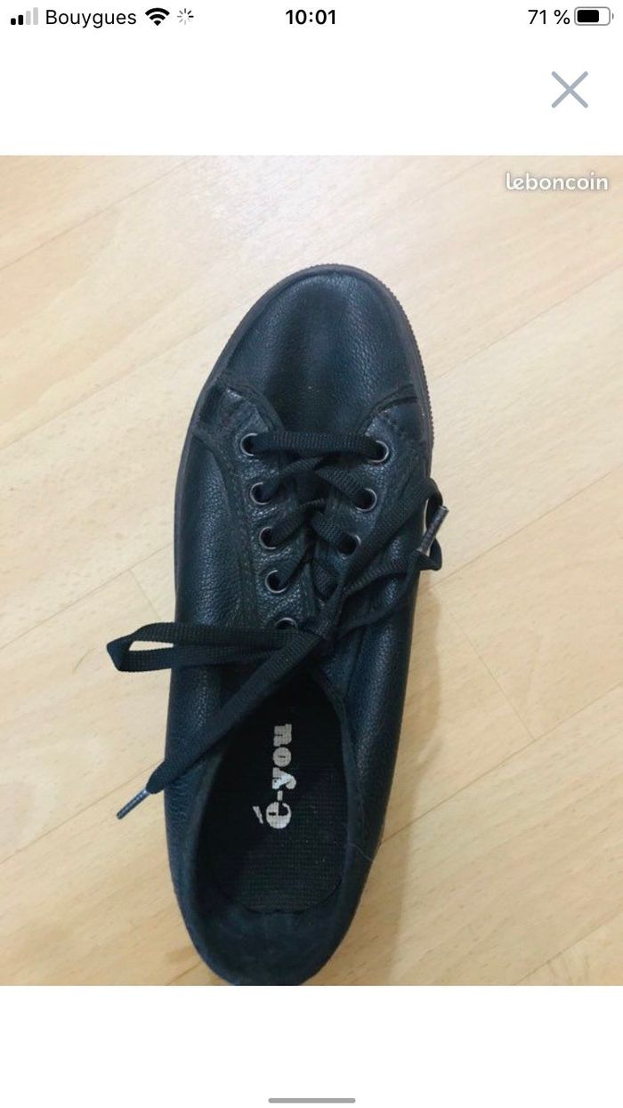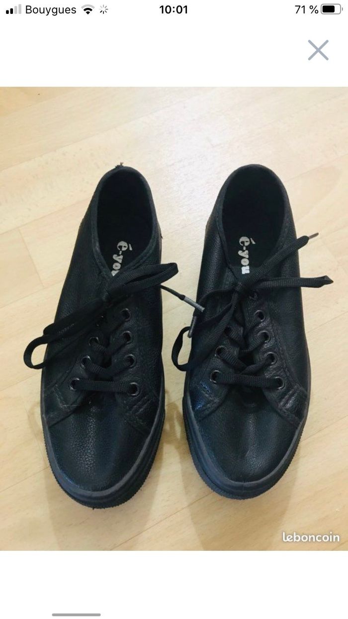 Baskets fille pointure 35 marque E-you couleur noir matière style cuir Semelles compensées de 4 cm Excellent état (fr)