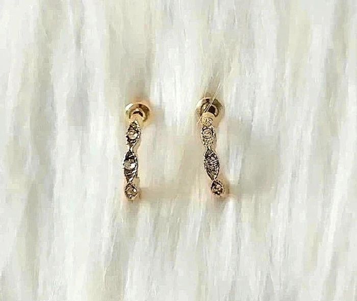#cencovbijoux 💖 Boucles d'oreilles demi-créoles chics ciselées torsadées avec strass imitation or rose Longueur 1,4 cm.