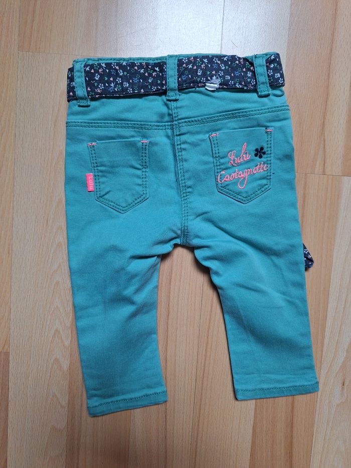 FILLE 6 MOIS N°741 Jeans vert Taille ajustable Ceinture tissu Taille 6 mois Lulu castagnette 5€ #kelly_fille6mois