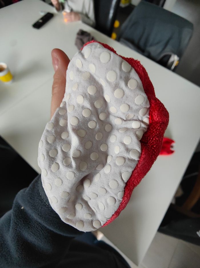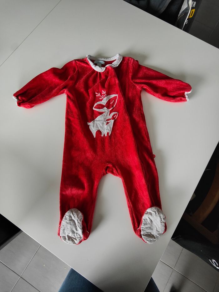 Pyjama en velours ouverture devant (petit trou au niveau d'une pression mais ne se voit pas et petite tache au col) antidérapant sous les pieds