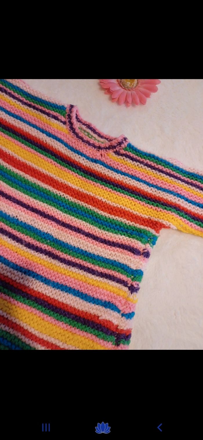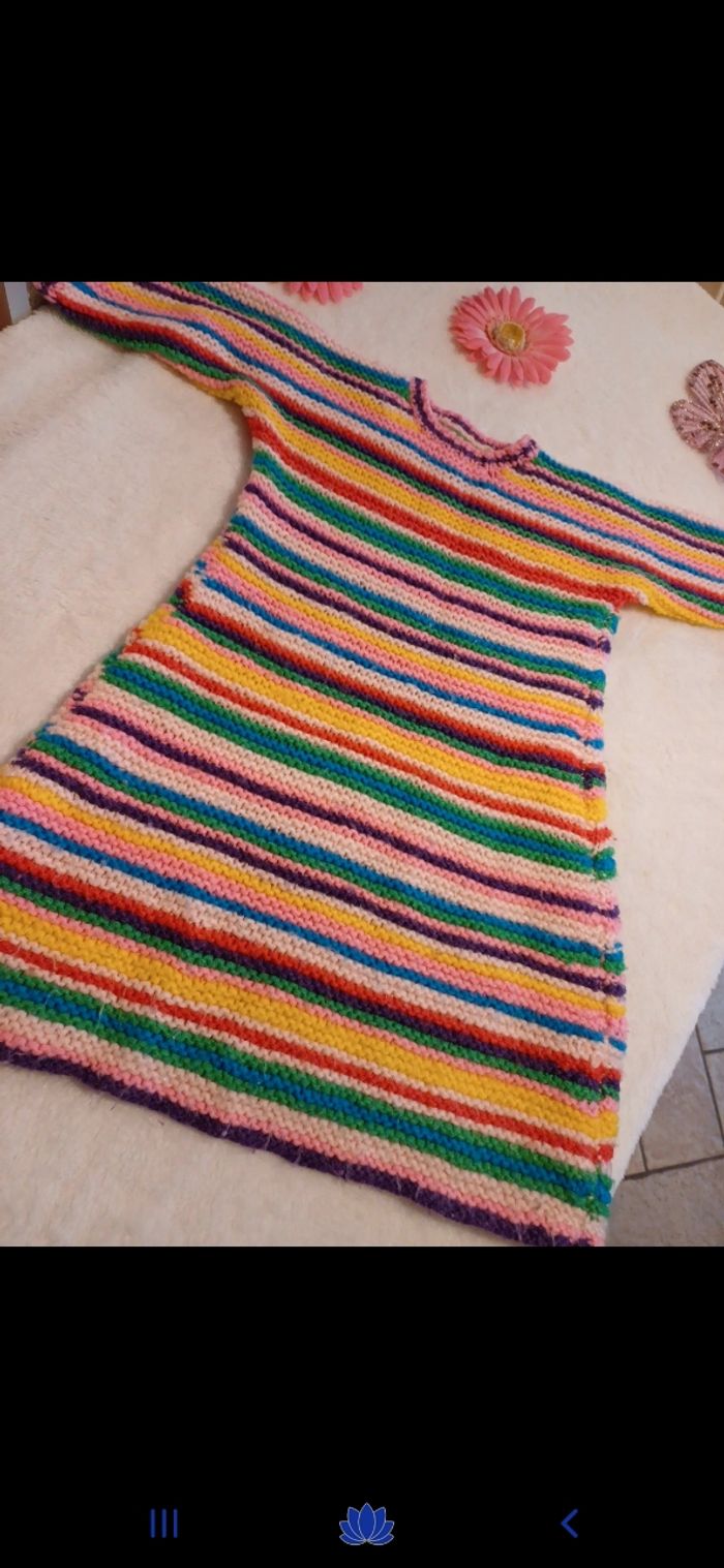 Jolie robe colorée à rayures. Boutonnée à l encolure. Quelques défauts car fait main mais tellement mignonne. Un peu boulochée.