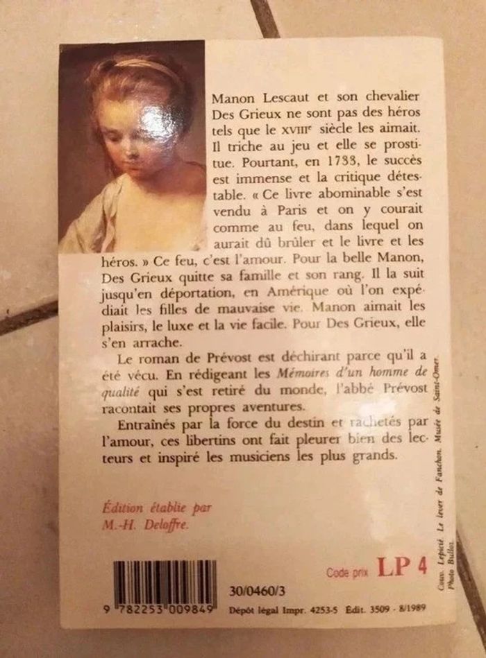 Roman Manon Lescaut - Abbé Prévost - Livre de Poche.