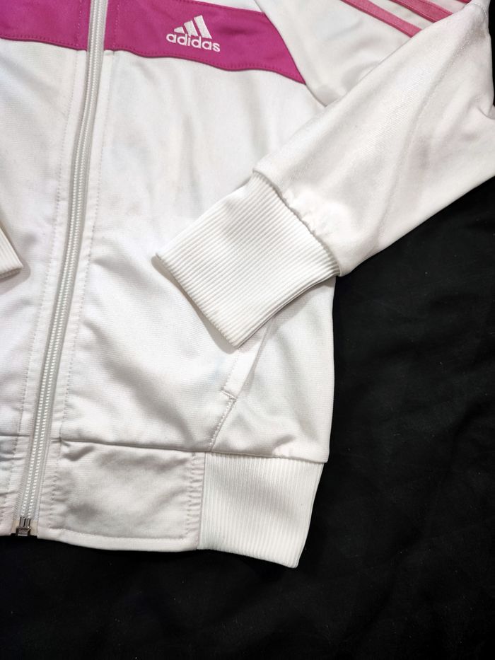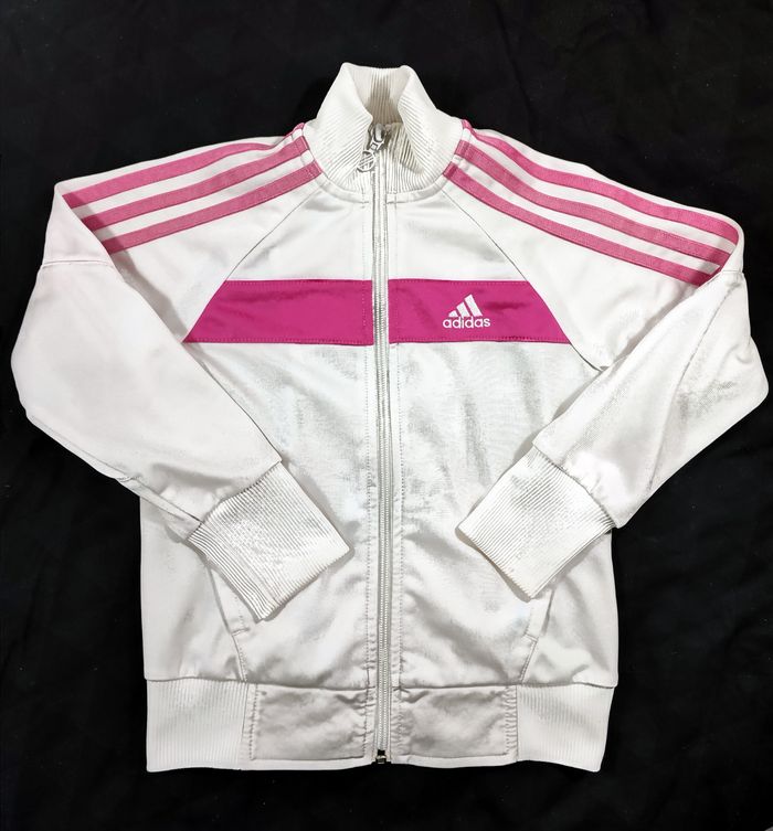 Salut 👋 Je vends une Veste/Gilet Blanche et Rose Adidas Taille 6 ans Dimensions : Hauteur : 40cm Aisselle a aisselle : 36cm N'hésitez pas si vous avez des questions 😁