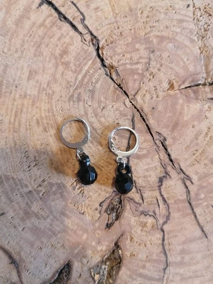 Boucles d'oreilles en acier inoxydable avec des strass rondes noires jamais portées