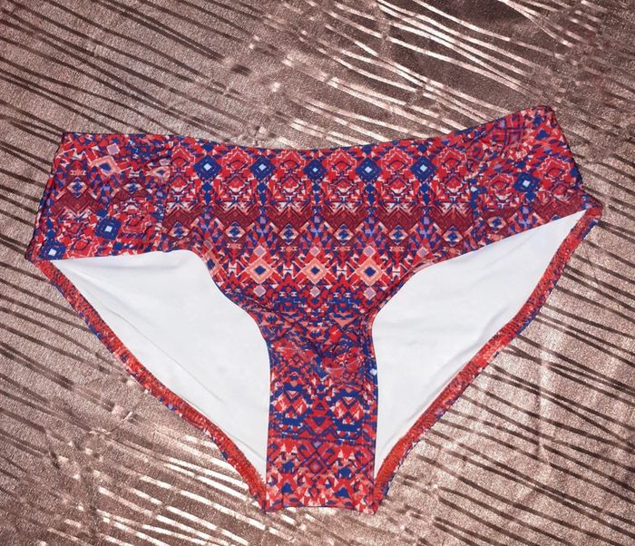 Forme midi. Entièrement doublée de maille. Découpe avec fronces sur les côtés. Finition double aiguille à la taille et aux cuisses. Composition : 82% polyamide 18% élasthanne  Doublure tulle 92% polyamide 8% élasthanne  Taille : 38 Prix : 9€ #sisterkayafemme38 #sisterkayamaillotdebain Réf : o.hf +1
