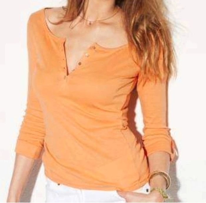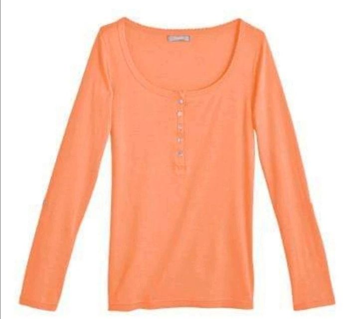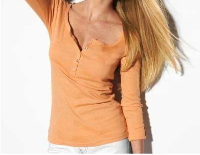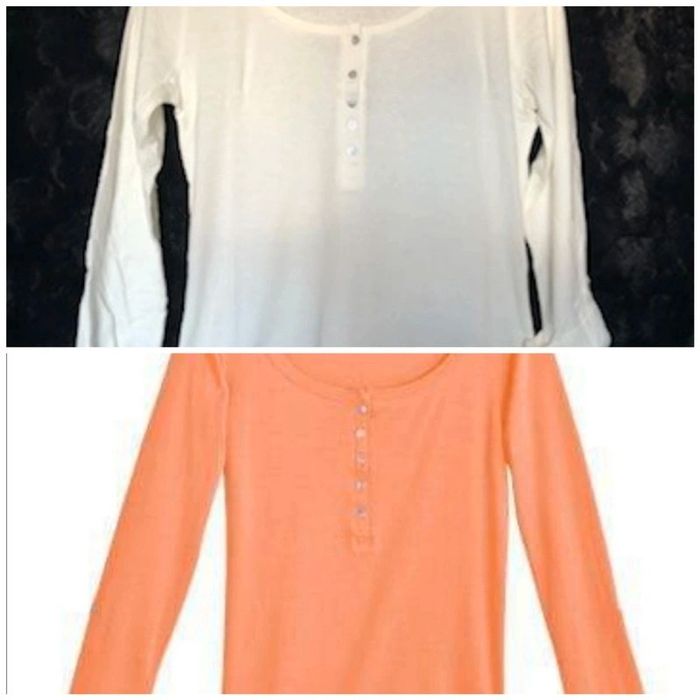 Lot de 2 tee shirts tunisien manches retroussables coton - Tee-shirt tunisien - Col rond - Patte de boutonnage - Manches longues retroussables par patte de boutonnage - Biais fantaisie bordant l'encolure - Longueur du tee-shirt : 65 cm environ COMPOSITION - 100% coton Coloris : orange /blanc cassé Taille : 38/40 Prix : 16 € Neuf jamais porté #sisterkayafemmeT38 Réf : b.00