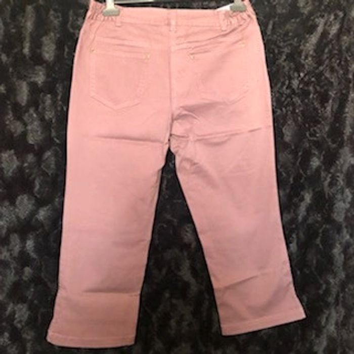 Pantacourt mi-mollet. Fermé par zip + bouton. Ceinture à passants élastiquée côtés dos. 2 poches cavalières avec rivets + 1 poche ticket devant. 2 poches plaquées dos avec rivets. Rehausse-dos. Fente côté bas de jambe. - Entrej. 60 cm. Bas 22 cm env. - 98% coton, 2% élasthanne. Taille : 42 Prix : 10€ Neuf jamais porté #sisterkayafemmeT42 Réf : 6605651- a.ac
