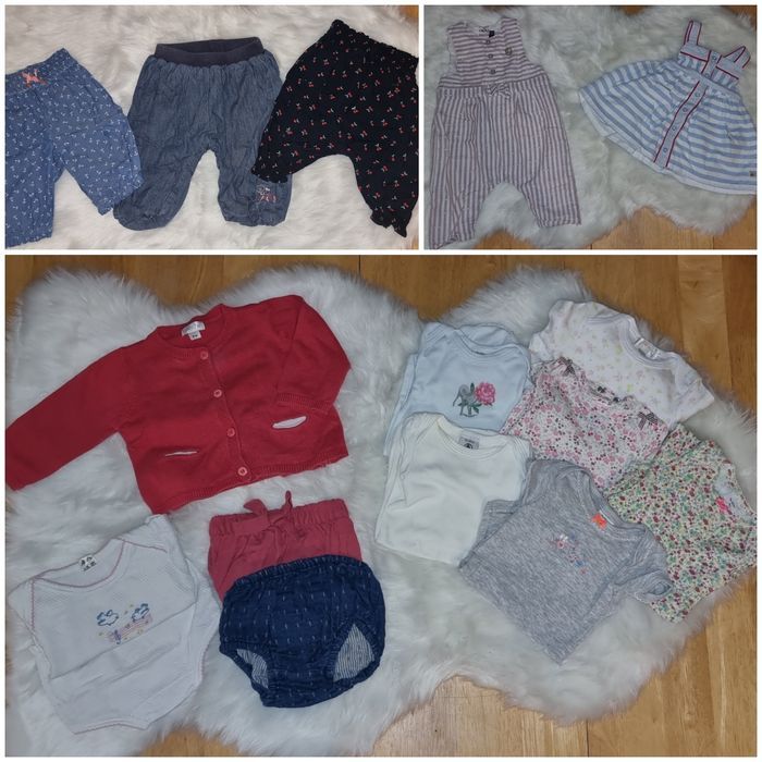 Lot 3 mois fille été 16 articles soie 1€ pièces marques : Kiabi , obaïbi , H&M, Sergent Major, Brioche , Zara , Verbaudet, Petit bateaux, Manon & Valentin .
