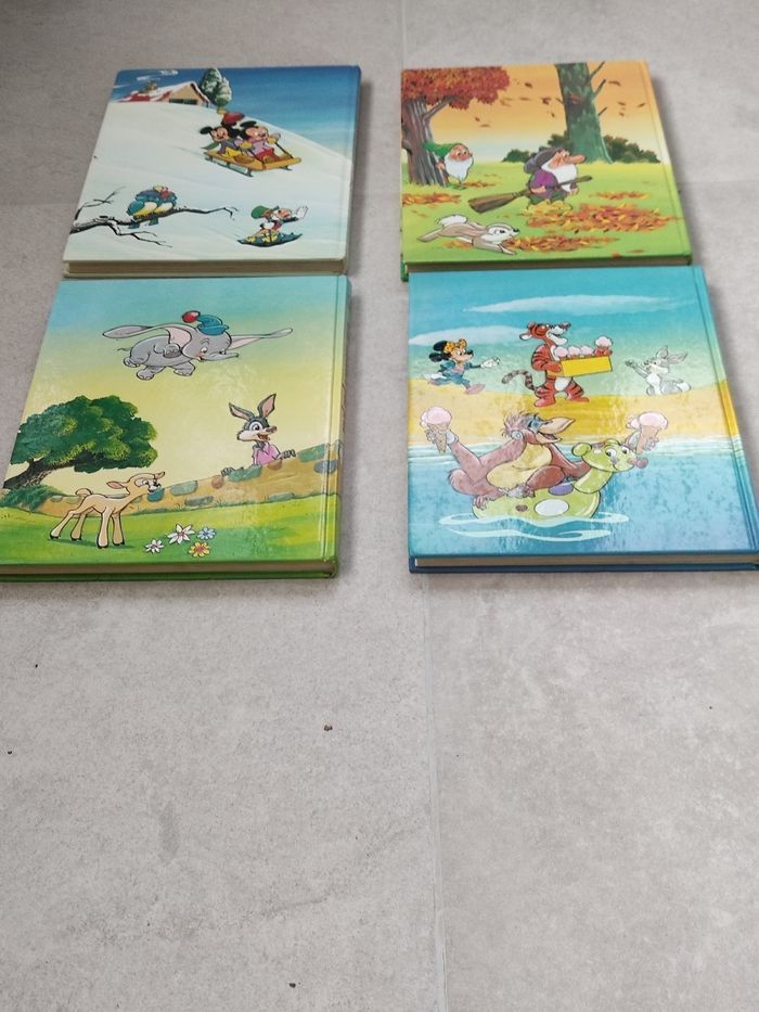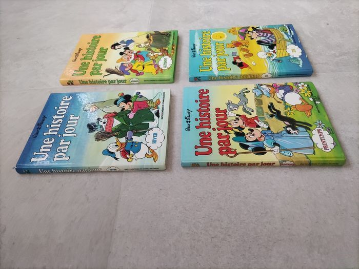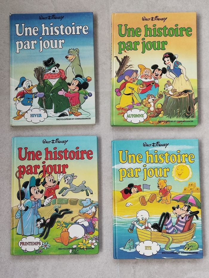Une histoire par jour en automne, Une histoire par jour en hiver, Une histoire par jour au printemps, une histoire par jour en été. Pages légèrement jaunies. Pages de couverture présentant quelques défauts. Rendez vous possible sur Collegien ou Coulommiers.