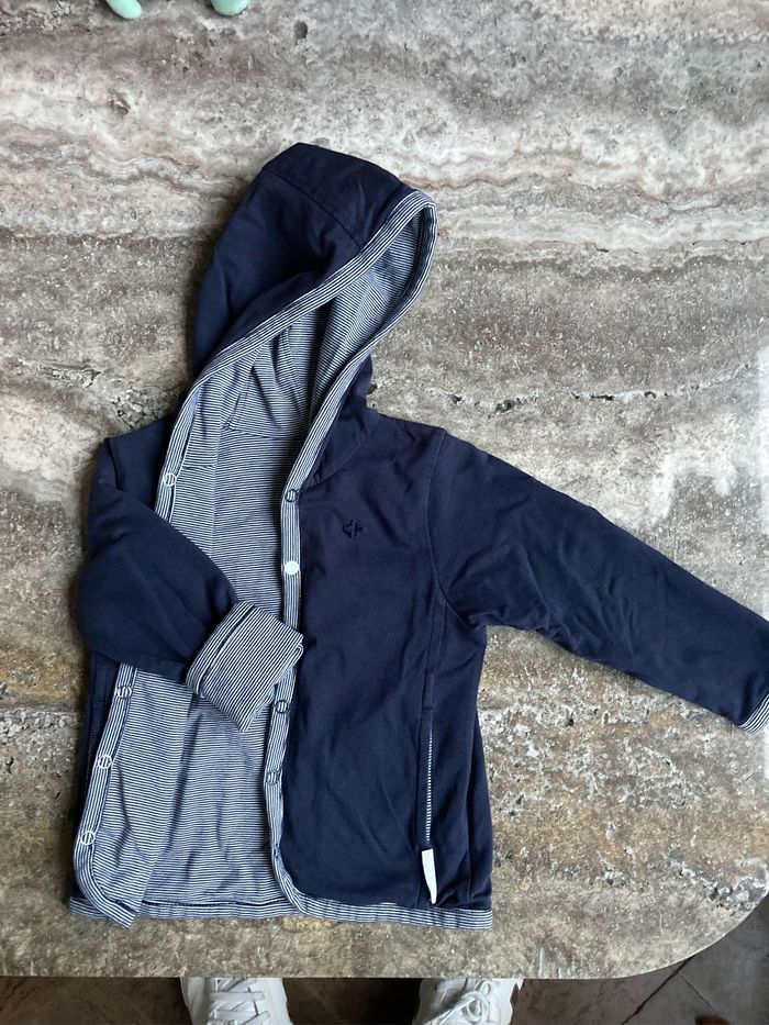 Très beau gilet- peu servir de veste légère l’été Réversible Bleu marine et marinière Taille 6-9mois