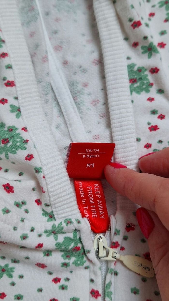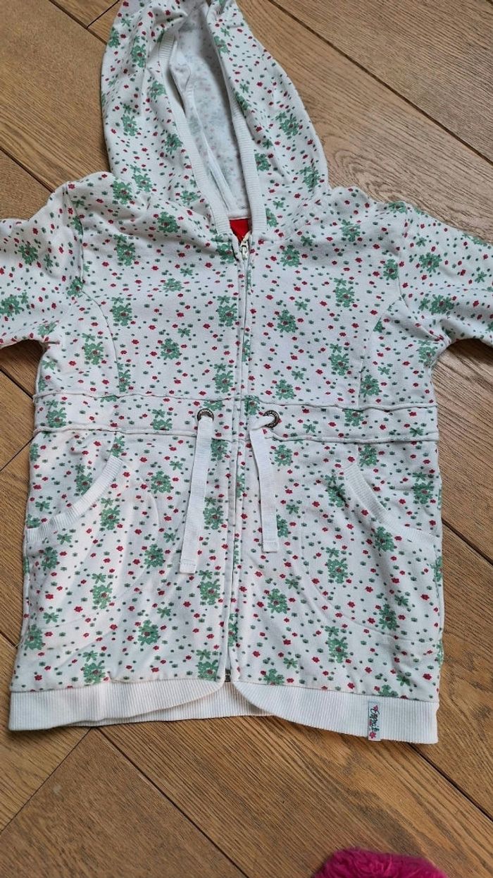 Sweat à capuche. Manque un peu de couleur sur la tirette ( voir dernière photo). Taille indiquée 8-9 ans