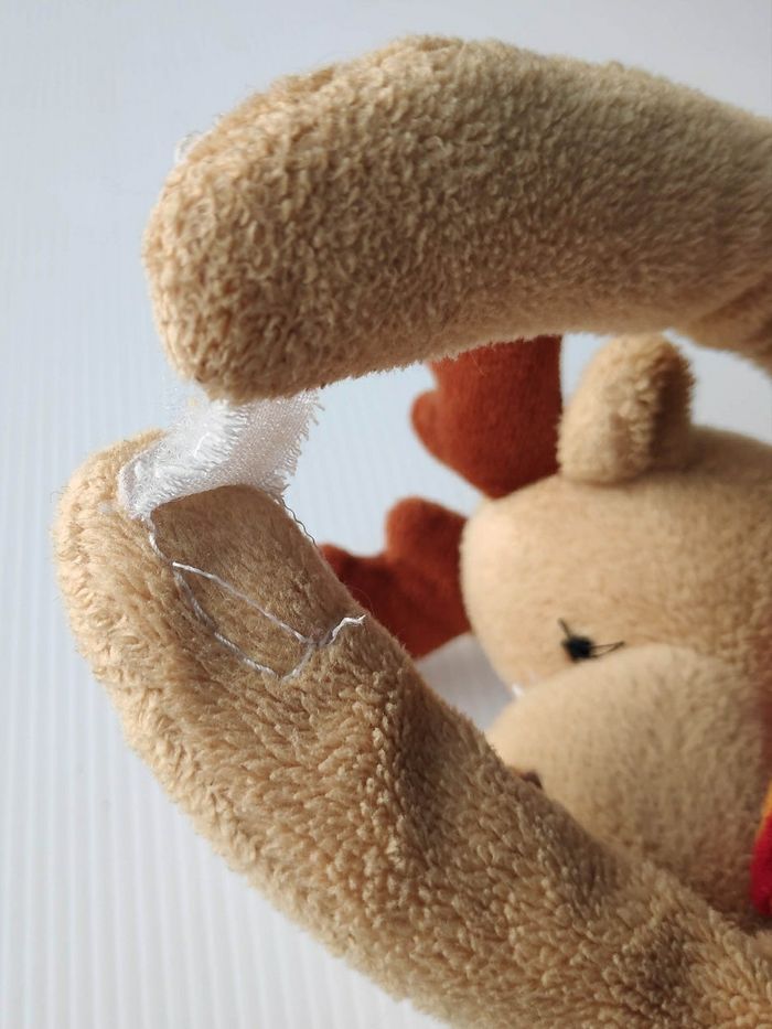 Peluche cerf Hauteur : 20 cm Le velcro est un peu décousu