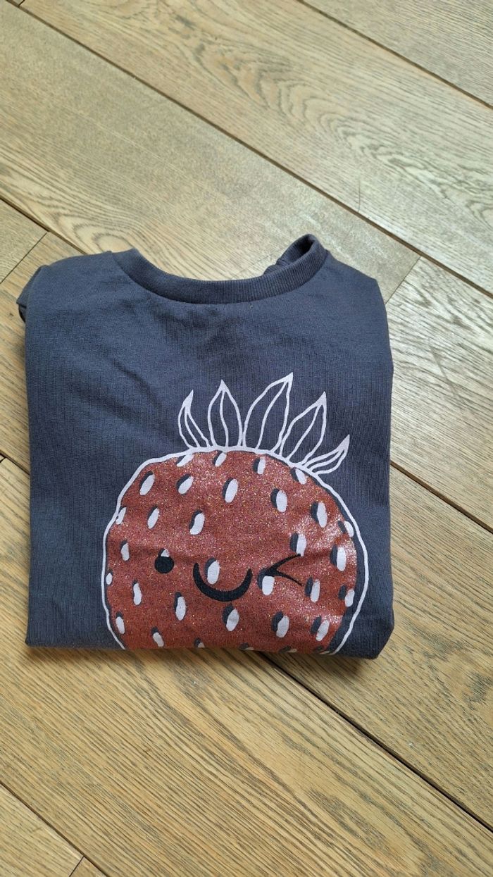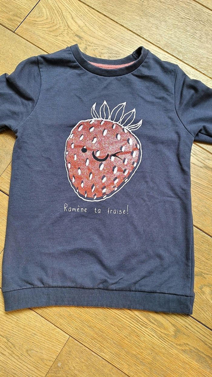 Très beau sweat fraise. Pas.de taille indiquée pour moi du 8 ans.