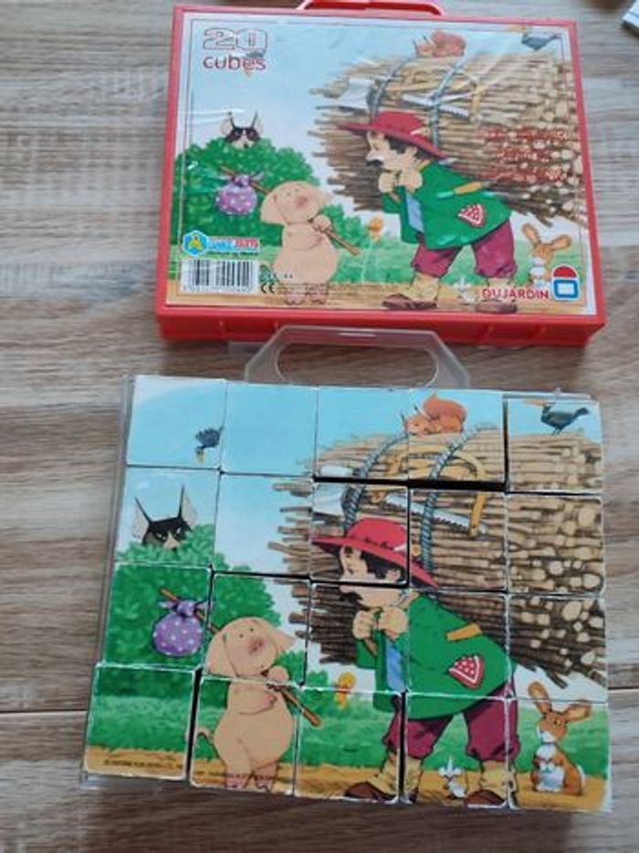 Petite valise de jeu de 12 cubes images 6 faces pour 6:puzzles Bon état L / D 18,50 x l 14,00 x h 5,50 cm