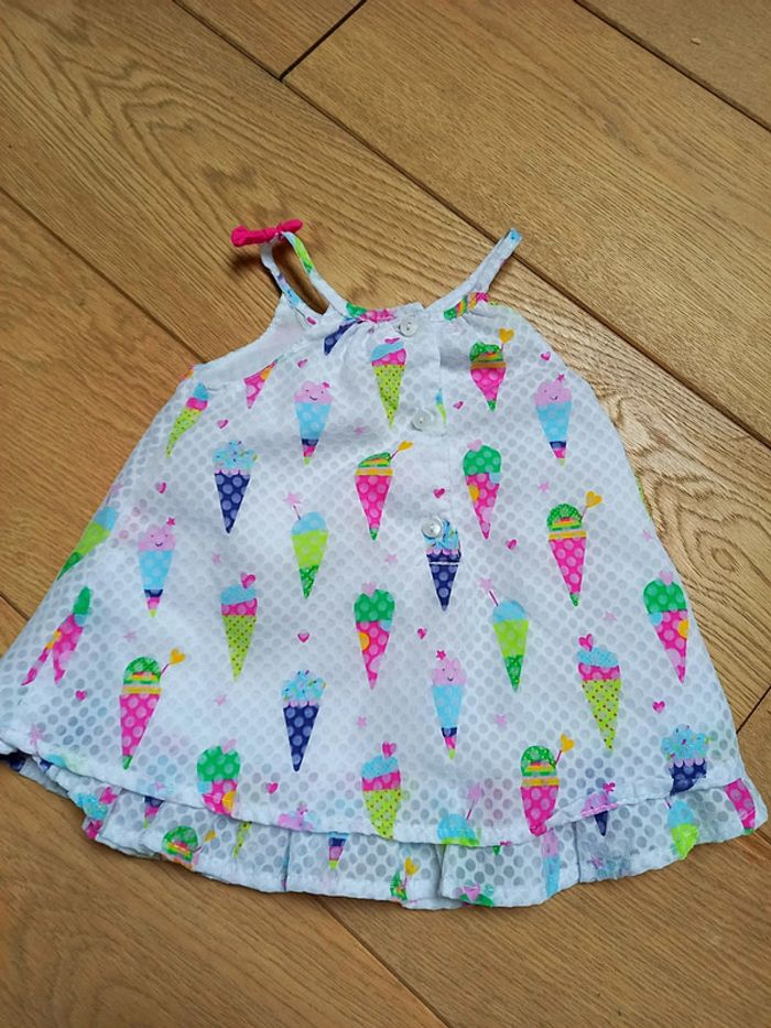 Très belle blouse motifs glaces Doublée. Très belles couleurs. Taille indiquée 6 mois. #fille3moiscanellemauve #fille6moiscanellemauve