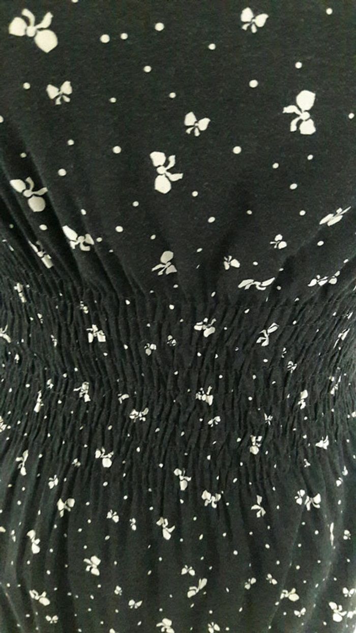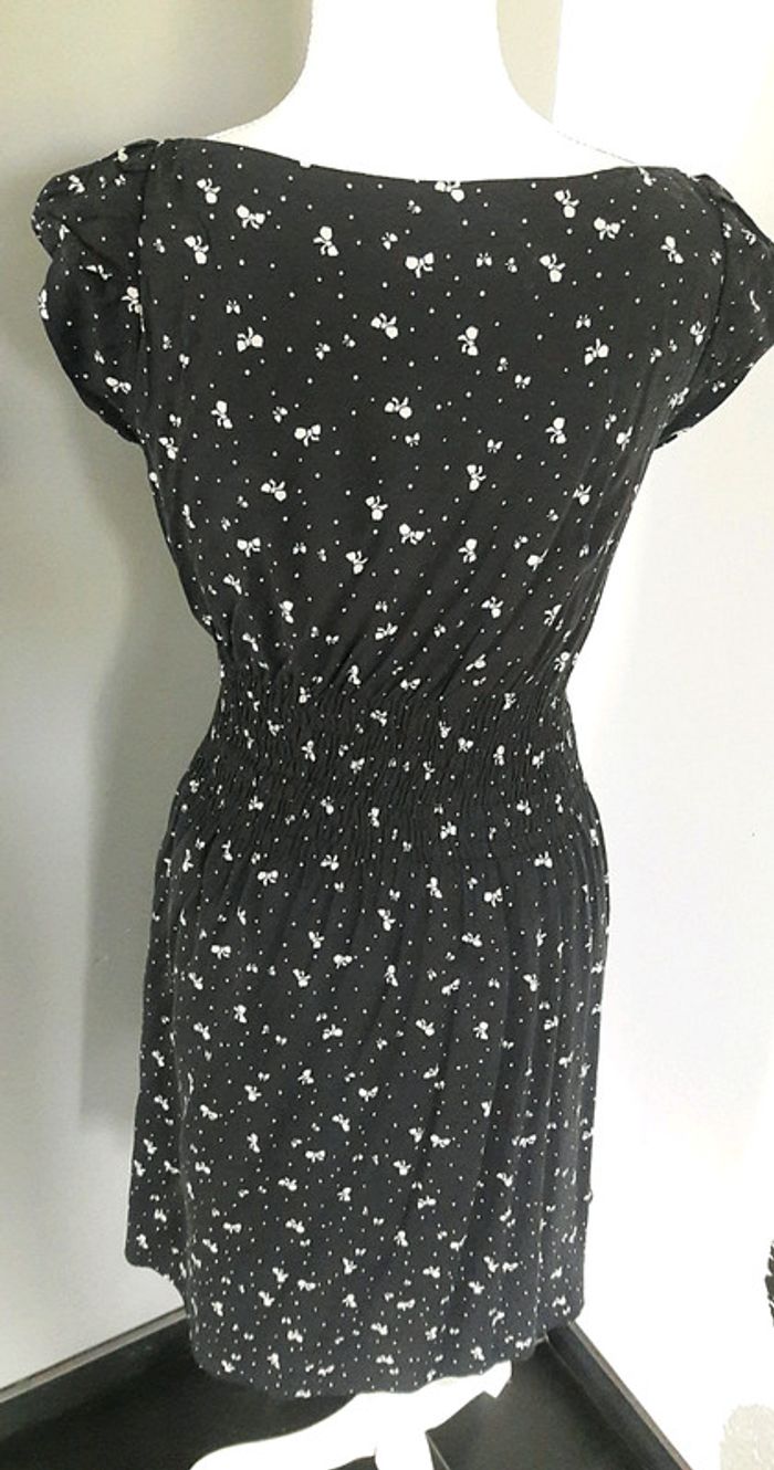 Très belle robe motifs noeuds. Fronces à la taille. Pas de taille indiquée pour moi du 36-38. Hauteur 90. #femmetaille36canellemauve #femmetaille38canellemauve